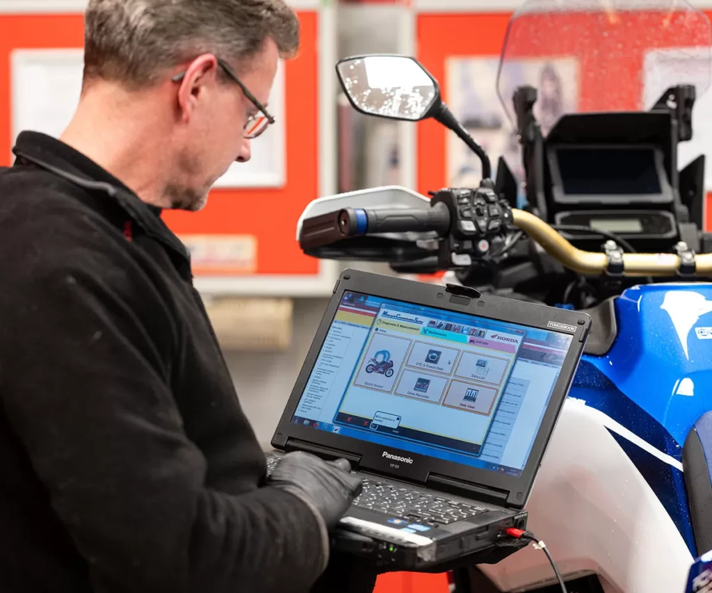 Our workshop offers a wide range of services including annual and scheduled servicing, MOT, Tyres, Repairs and quotations. We work on most mainstream brands of machine. We’re officially Honda certified and trained with a bright, modern workshop and the very latest tools and diagnostic equipment. We offer a free courtesy machine too so you can continue your day completely uninterrupted. Come see why we’ve been around for years.